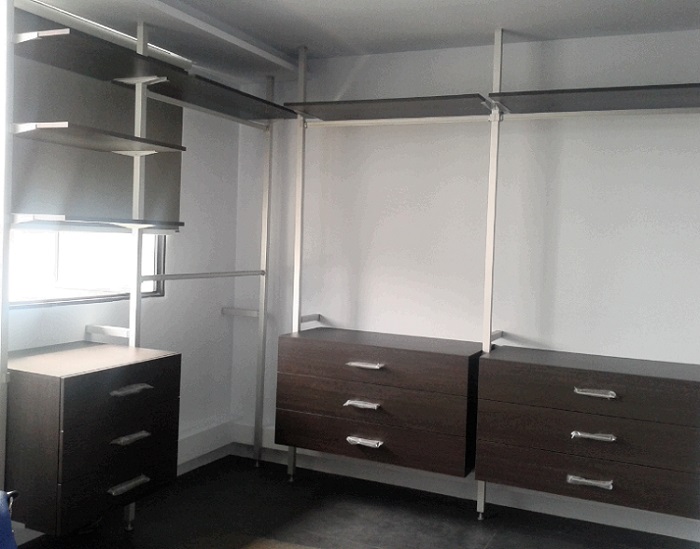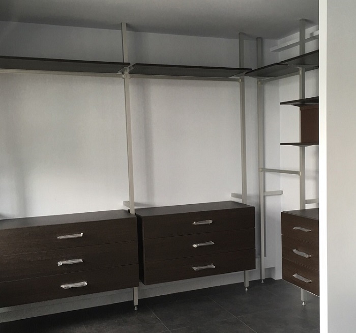 raumplus UNO Interior System applied as a walk-in wardrobe Panel Material: MFC 1077