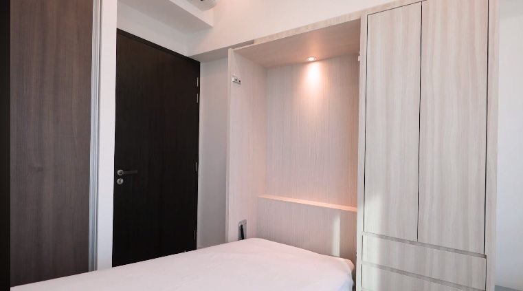 Roomier Heron wall bed and Atim Lunch designed within a wall cabinet to maximise room space.