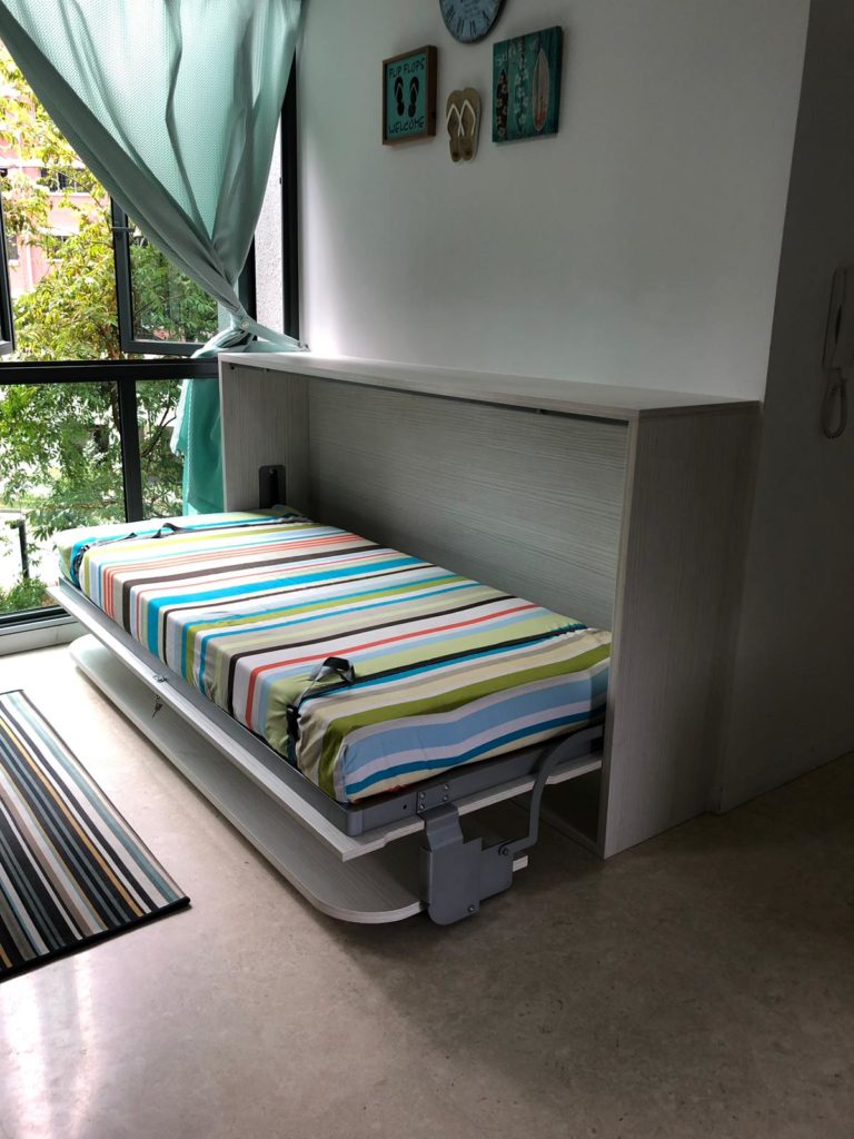 Roomier’s Finch bed-desk system offers a full-size desk and a full-size bed in the space of just a study desk. In the day, the desk works perfectly like any other study desk – functional, sturdy and sleekly designed. At night, Finch swiftly transforms to reveal a single bed, without having to clear the items placed on the desk. It is the perfect multi-purpose furniture for the study room, guest room or kid’s room.